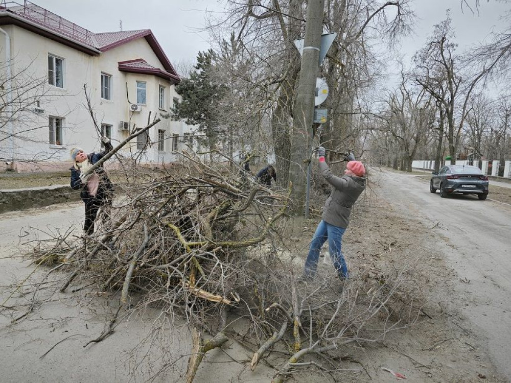Десятки людей вышли на ул. Ленина, чтобы оказать посильную помощь городским коммунальным службам в сборе и уборке упавших веток. Последствия прошедшего в феврале над Волгодонском циклона не могут устранить до сих пор – не хватает рабочих рук и спецтехники.