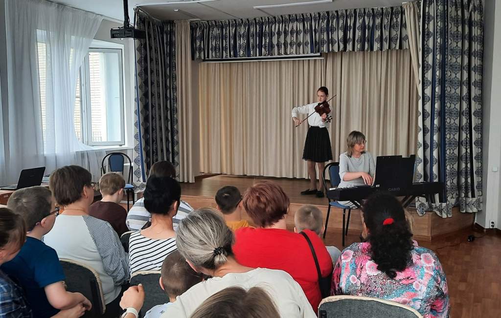 Музыканты подарили настоящий живой концерт учащимся Центра с ограниченными возможностями здоровья и инвалидностью. Дети вместе с родителями с интересом слушали игру на гитаре, скрипке, пианино, баяне, а также исполнение песен юными вокалистами музыкальной школы.