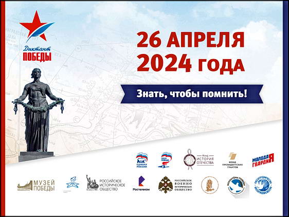 26 апреля по всей России, во всех регионах страны, в том числе и в Волгодонске, за рубежом, а также онлайн на сайте диктантпобеды.рф в шестой раз состоится Международный исторический диктант на тему событий Второй мировой войны «Диктант Победы».