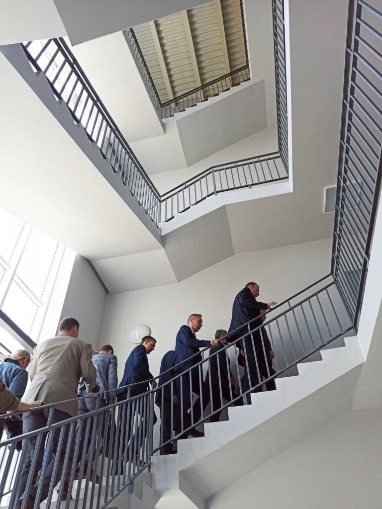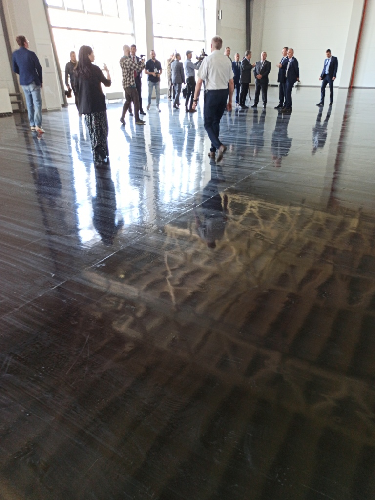 В настоящее время строительные работы завершены. Так что губернатор Василий Голубев, министр физической культуры и спорта Ростовской области Самвел Аракелян, директор Ростовской АЭС Андрей Сальников и глава администрации Волгодонска Юрий Мариненко осматривали уже готовое, хотя и еще не оборудованное здание.