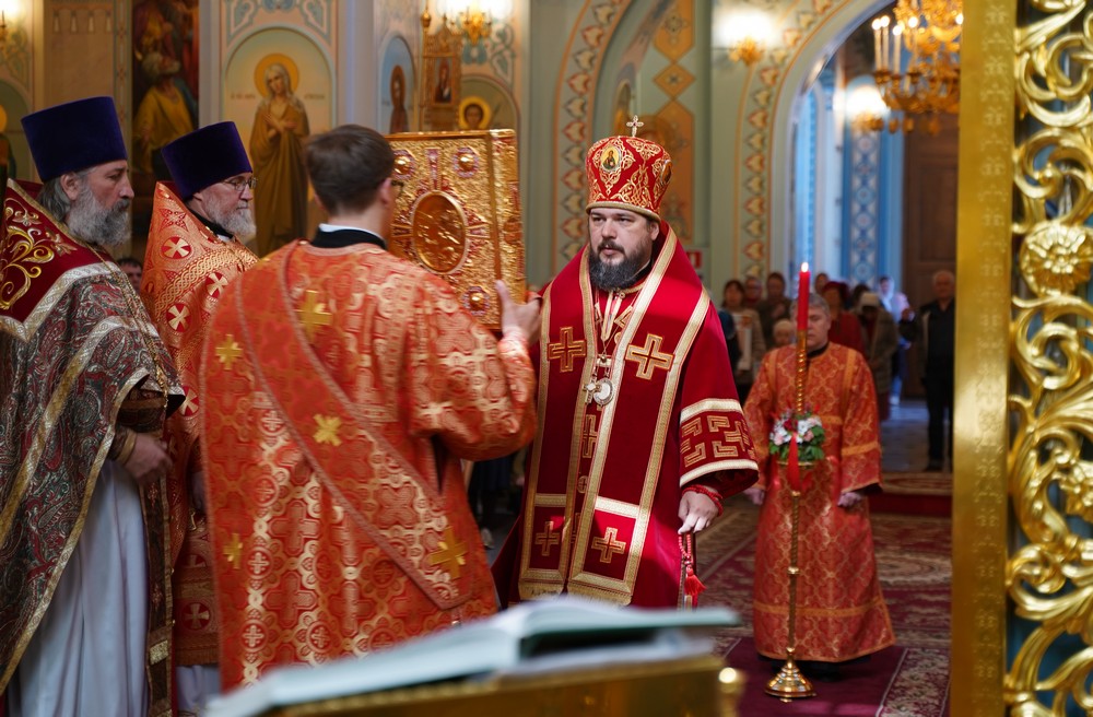На сугубой ектении была вознесена молитва о Святой Руси. Богослужебные песнопения исполнил хор собора под управлением регента Екатерины Артюховой.