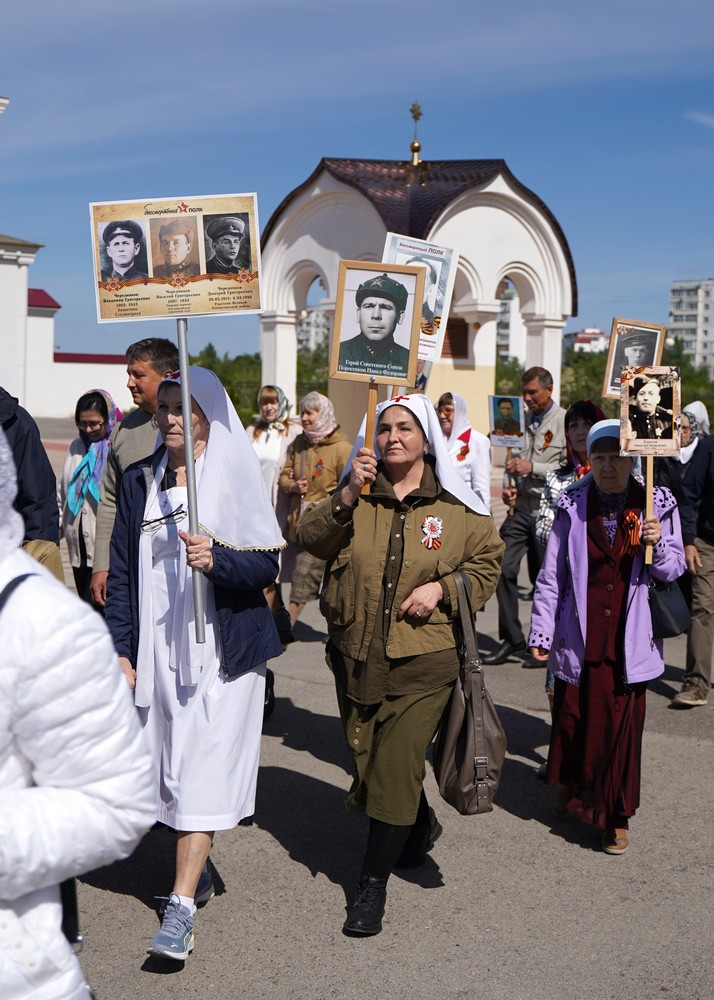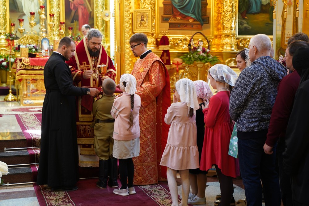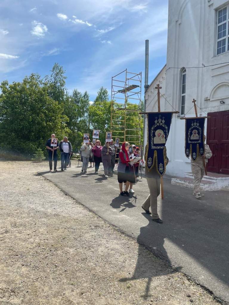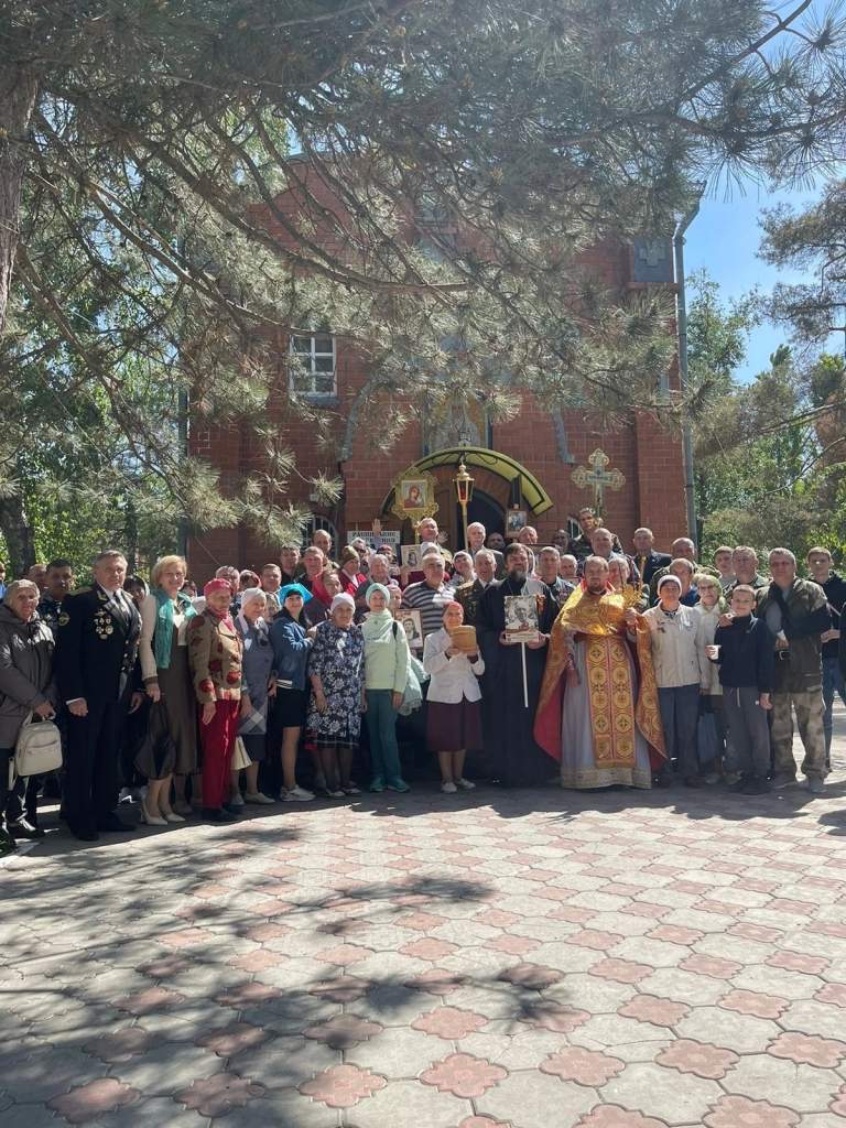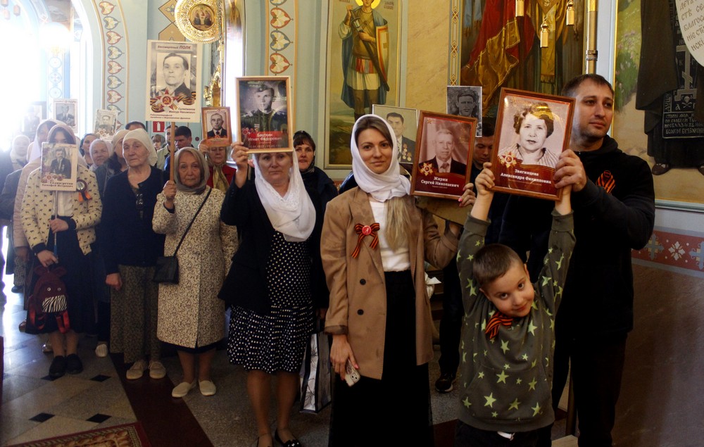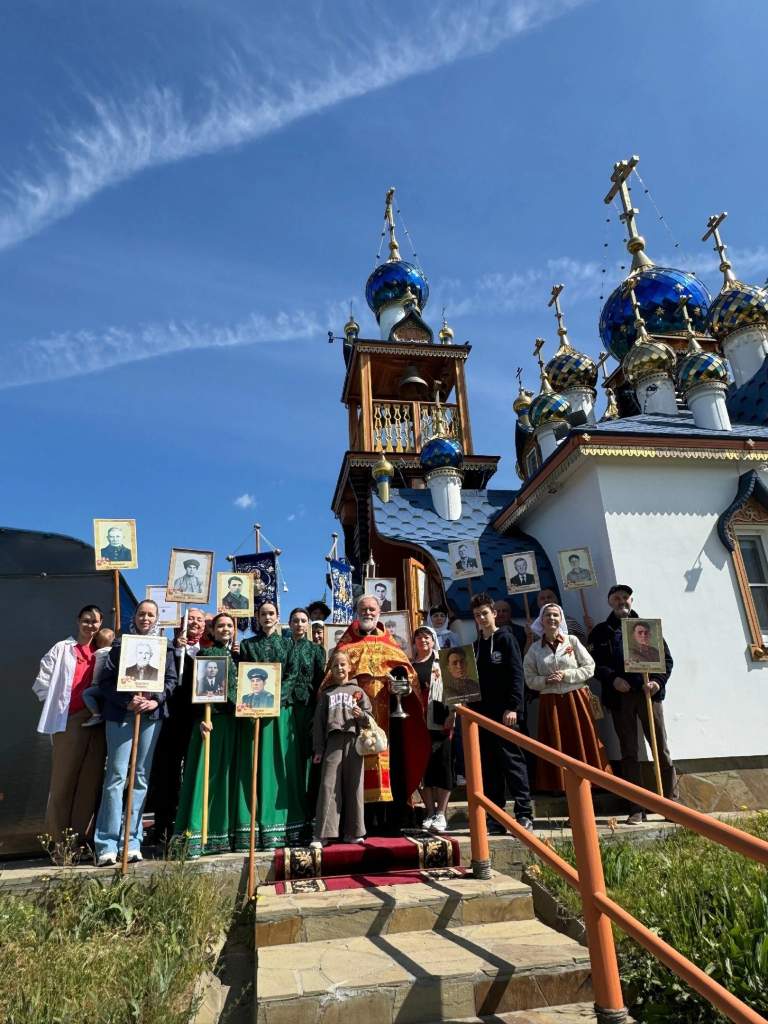 После Литургии состоялся традиционный для пасхальных дней крестный ход, но так как богослужение совпало с Днём Победы, верующие по благословению владыки Антония прошли вокруг храма с портретами родных и близких – участников войн, тем самым объединив крестный ход с акцией «Бессмертный полк».