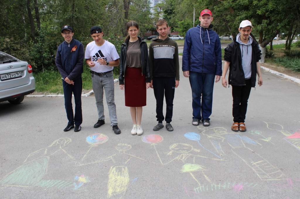 конкурс рисунков на асфальте «7-я». Рисовали мелками на асфальте молодые получатели услуг с ментальными нарушениями. У них получились очень яркие и разнообразные картины семьи и близких людей. Конкурс рисунков на асфальте «7-я» позволил реализовать возможности каждого