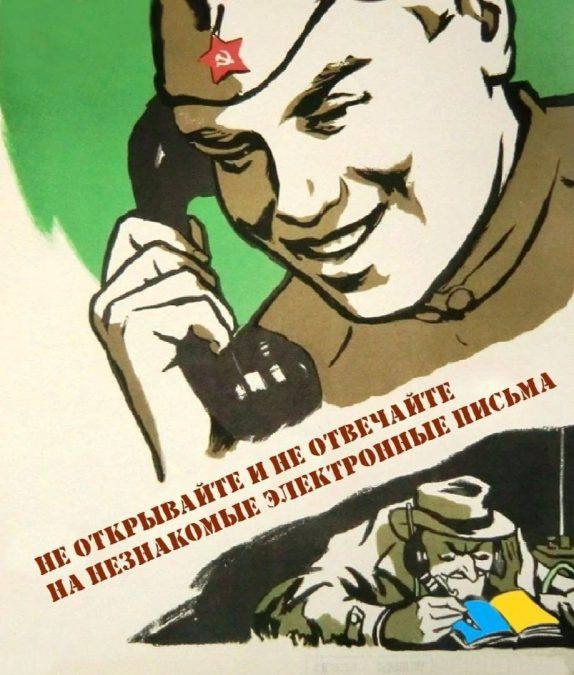 Кузбасские власти актуализировали советские агитплакаты. По мнению замгубернатора Андрея Панова, для борьбы с мошенниками трудно придумать что-то лучше.Фото: Соцсети