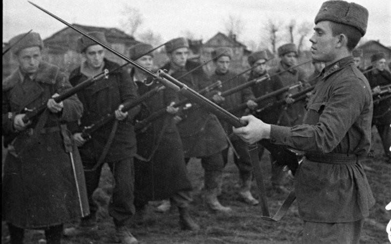 Первый московский полк на занятиях по штыковому бою, 1941 г. Фото: Музей Москвы.