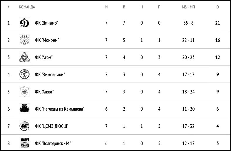 «ЦСМЗ ДЮСШ» сыграл с «Волгодонск-М» со счетом 1: 5. «Динамо» одолел «Наглецов из Камышева» со счетом 8: 2. «Анжи» проиграл «Зимовникам» — 2: 5. «Монрем» победил «Атом» со счетом 5: 3.
