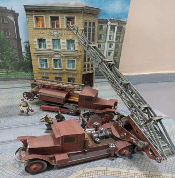 Виктория Дробышевой, проект «Диорама тушение пожара. Пожарные машины ЗИС ПЭЛ-30, ЗИС-42ПМЗ»: