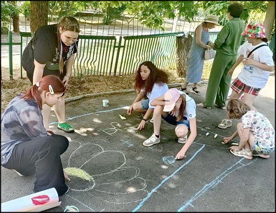 «Дружная семья – дружная Россия» — под таким названием в Центре детского творчества состоялся конкурс рисунков на асфальте, направленный на сохранение и укрепление дружеских семейных отношений и семейных традиций. В конкурсе приняли участие 7 команд Центра детского творчества.