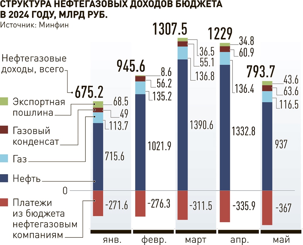 Нефтегазовые доходы в этом году сохраняются на высоком уровне, только в январе они не превысили ожидаемый минфином базовый объем поступлений. Более того, если в конце прошлого года высказывались опасения в том, что отрасль справится с повышенной налоговой нагрузкой, то данные за пять месяцев эти сомнения развеяли. При этом рост показывают только налоговые выплаты с добычи нефти и газового конденсата. Приходы с добычи газа и экспорта углеводородов находятся приблизительно на одном уровне. А выплаты компаниям из бюджета по демпферу (компенсации нефтяникам за удержание низких цен на топливо на внутреннем рынке) и другие, наоборот, увеличиваются.