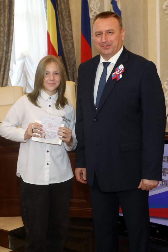А в День России паспорт из рук губернатора Ростовской области Василия Голубева получили 15 юных жителей Дона — талантливые ученики школ и лицеев Донского края. Все они – участники регионального «Движения первых», прилежные ученики, целеустремленные и активные, сообщает официальный портал правительства Ростовской области.