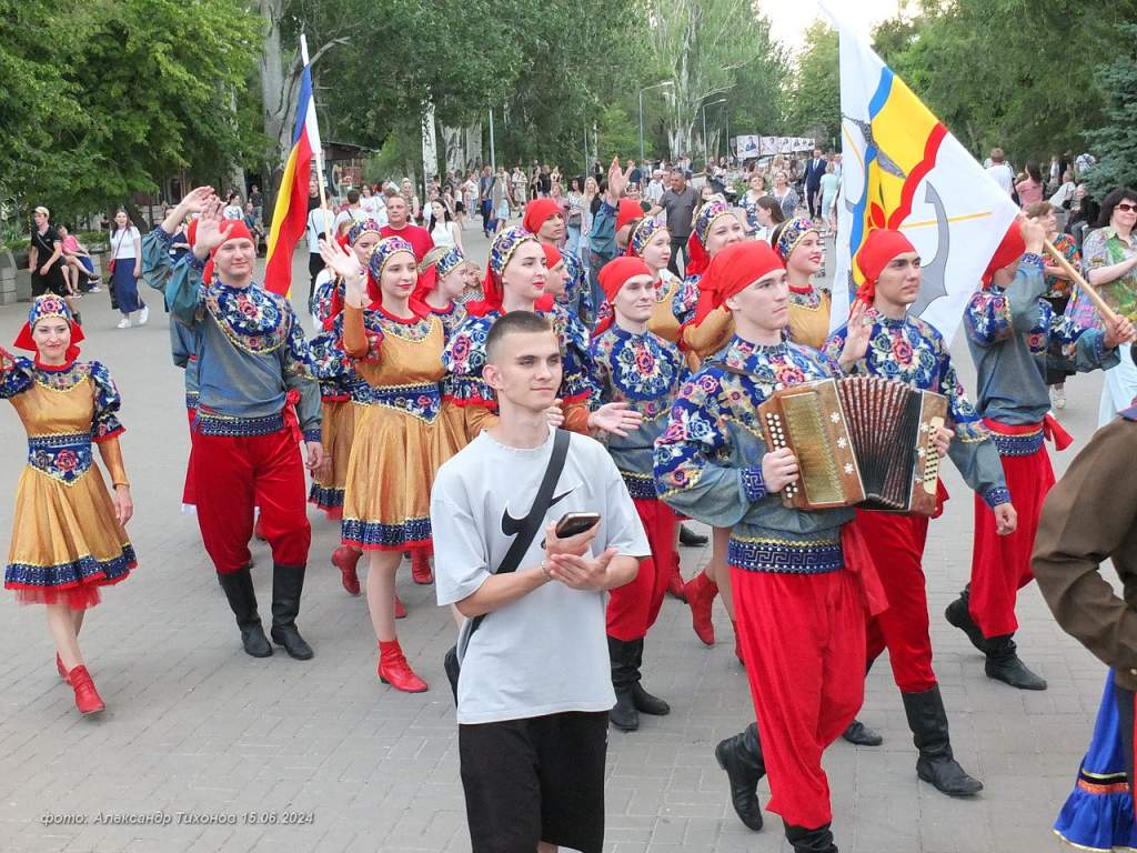 Волгодонцы приняли участие в массовом гулянии в парке Победы, увидели праздничное шествие делегаций-участников и гала-концерт участников фестиваля на площади Победы.