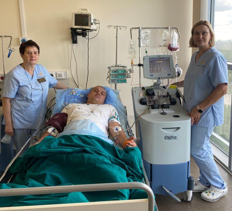 Существует два способа забора донорского материала: из тазовой кости или из вены. Дмитрий выбрал второй вариант как более привычный. Процедура длится порядка шести часов: донора подключают к специальному аппарату — сепаратору, из одной руки забирают кровь, отделяя нужные клетки от обычной крови, а в другую вливают обратно.