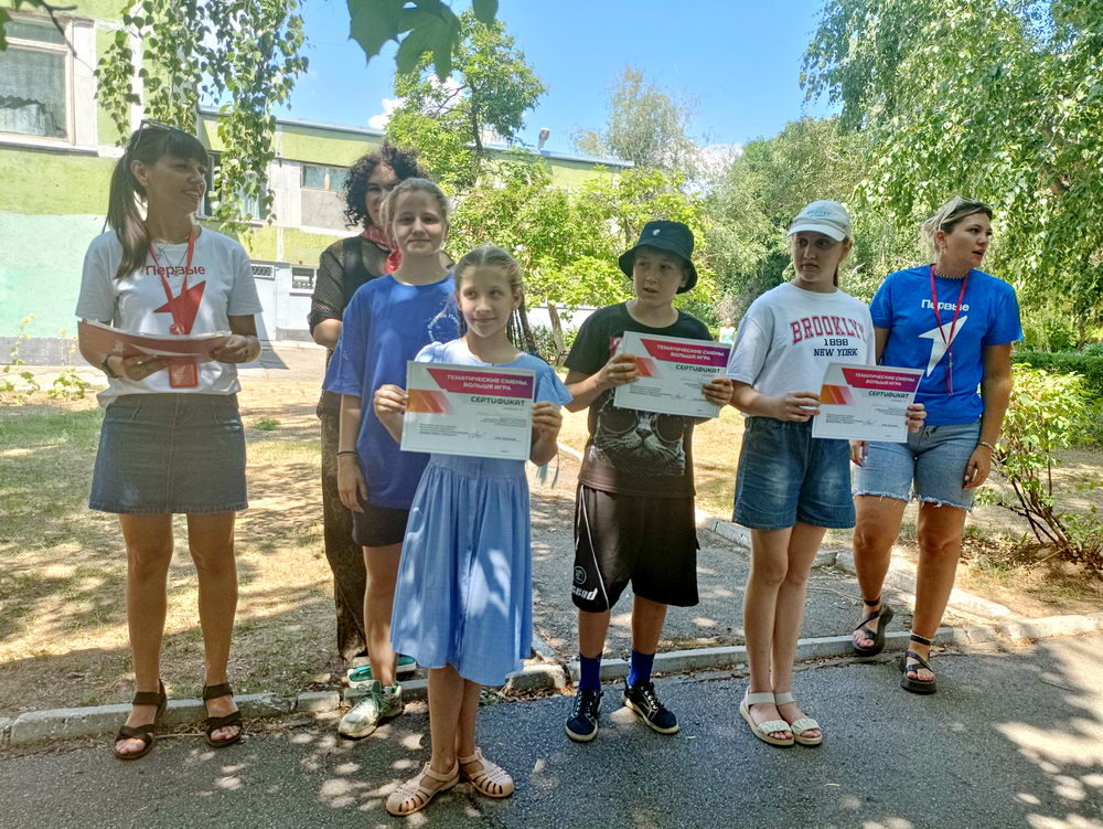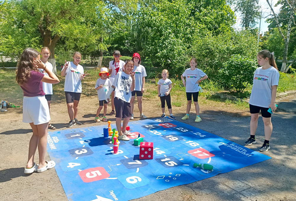 Летний жаркий день для ребят разбавила Большая игра от Движения Первых, которую провели активисты из детского совета Первых.