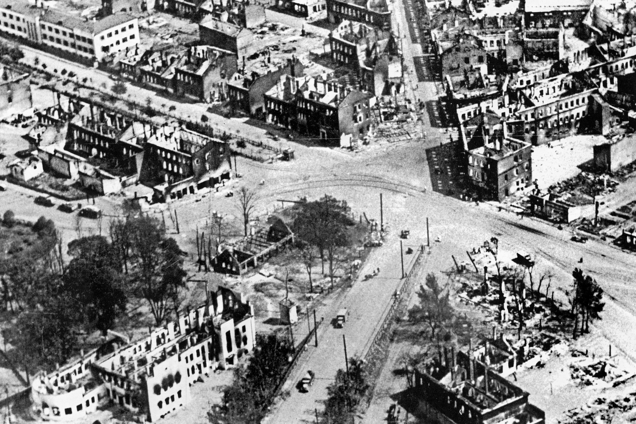 Разрушенный Витебск. Для человека, ценящего художественный авангард XX века, при словах «Над Витебском» в памяти сразу всплывают сказочные миры Марка Шагала. Собственно, на тех полотнах над родным городом летает сам Шагал: то в образе странного старика с бородой, то без метафор, просто взявшись за руку с любимой женщиной. И вот совсем иной Витебск. Снят с воздуха, 1941 год. Но это не прагматическая съемка с самолета-разведчика для оценки результативности бомбометания. Снимал фотограф вермахта, боец одной из пропагандистских рот. То есть это «отчет о проделанной работе» для немецкого народа. Что ж, в философском аспекте его миссия выполнена: и немецкий народ, и весь мир такое обязан помнить… Кстати, добрая ирония судьбы: отчий дом Шагала на Покровской улице, хоть и находился рядом с ж/д вокзалом (который гитлеровцы разрушали особо усердно), каким-то чудом уцелел.