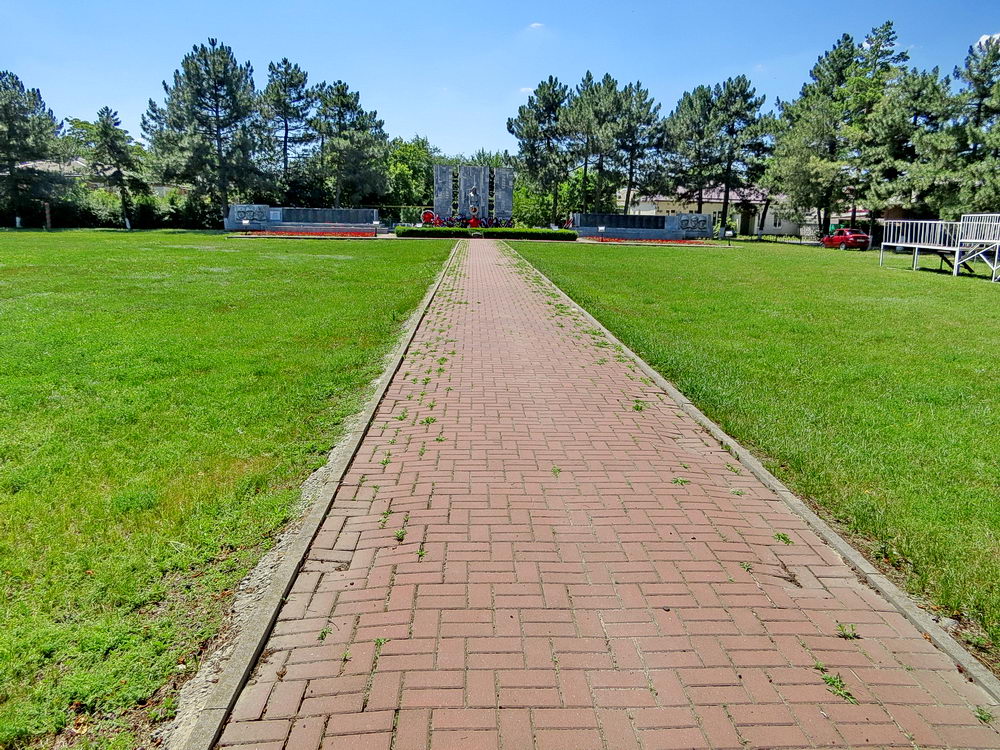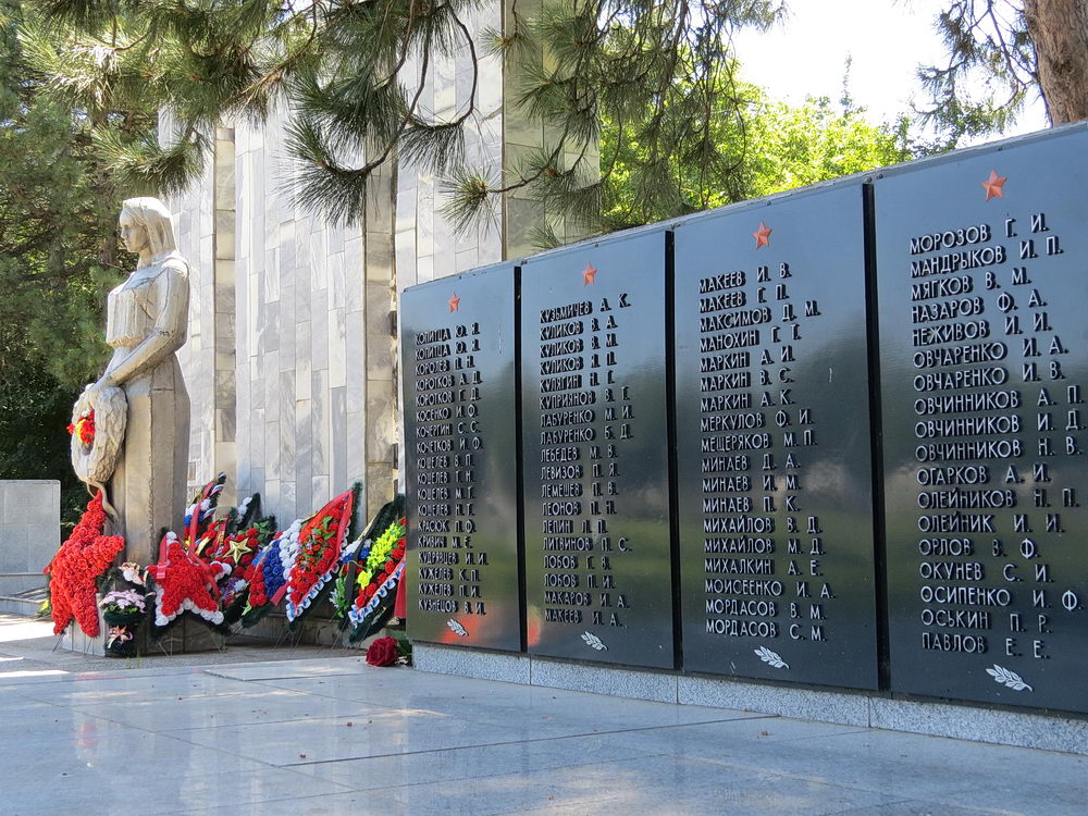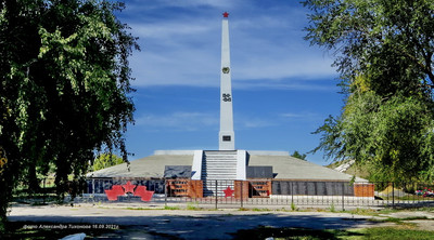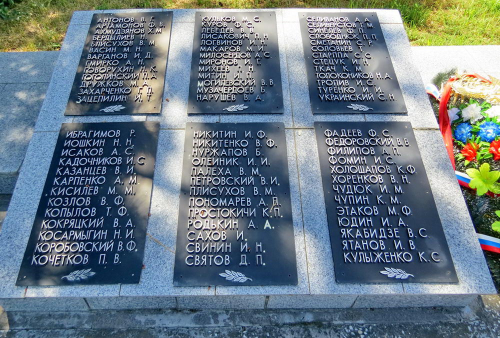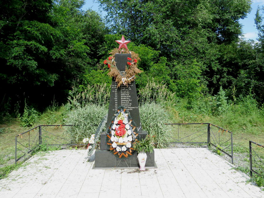 Но есть «но».. Долгие годы считалось, что захоронения там у памятника и стел. Мало кто знал, что эти полтора гектара занимает захоронение. Мало того- там проводились митинги — трибуна справа сохранилась до сих пор.. Да, здесь есть захоронения (братские могилы) погибших войнов- они там у обелиска. А всю остальную площадь занимают захоронения воинов умерших от ран. Ведь рядом был госпиталь ППГ №143. Хорошо, что несколько лет назад появилась на мемориале табличка всё объясняющая. Примерно — 110 имён известны, 1900 — неизвестные…