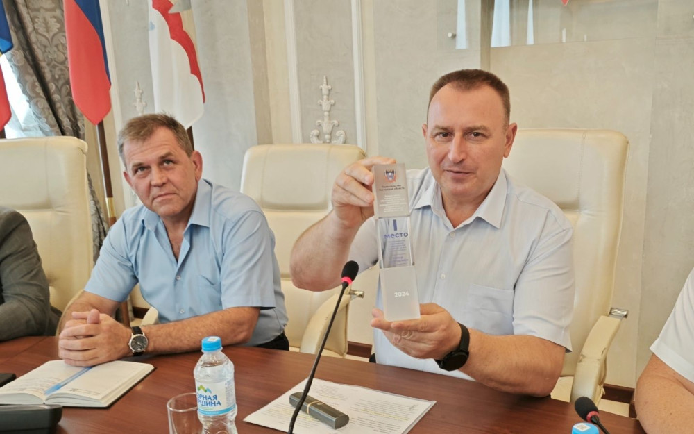 Министр по вопросам обеспечения безопасности и противодействия коррупции Ростовской области Олег Жеухин вручил памятный кубок и диплом победителя главе администрации Волгодонска Юрию Мариненко