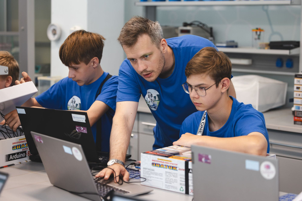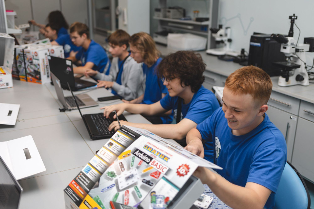 Во время образовательного курса дети познакомились с основами электроники, программированием микроконтроллеров, изучали технологию компьютерного зрения и его совместимость с роботами, работали с конструкторами Arduino. А также собрали свои первые роботизированные модели вместе с ведущим и изобретателем Андреем Бахметьевым, который провел отдельный образовательный блок.