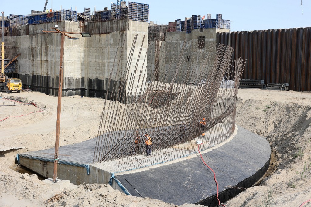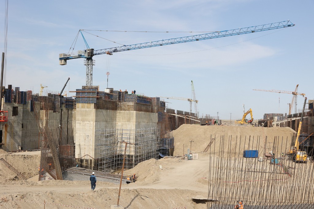 По информации подрядчика, на объекте ежедневно работают почти 2000 человек, 180 единиц техники; задействовано три бетонных завода, которые выдают по 25 000 кубометров в месяц. Бетона уложено около 70% от запланированного объема.