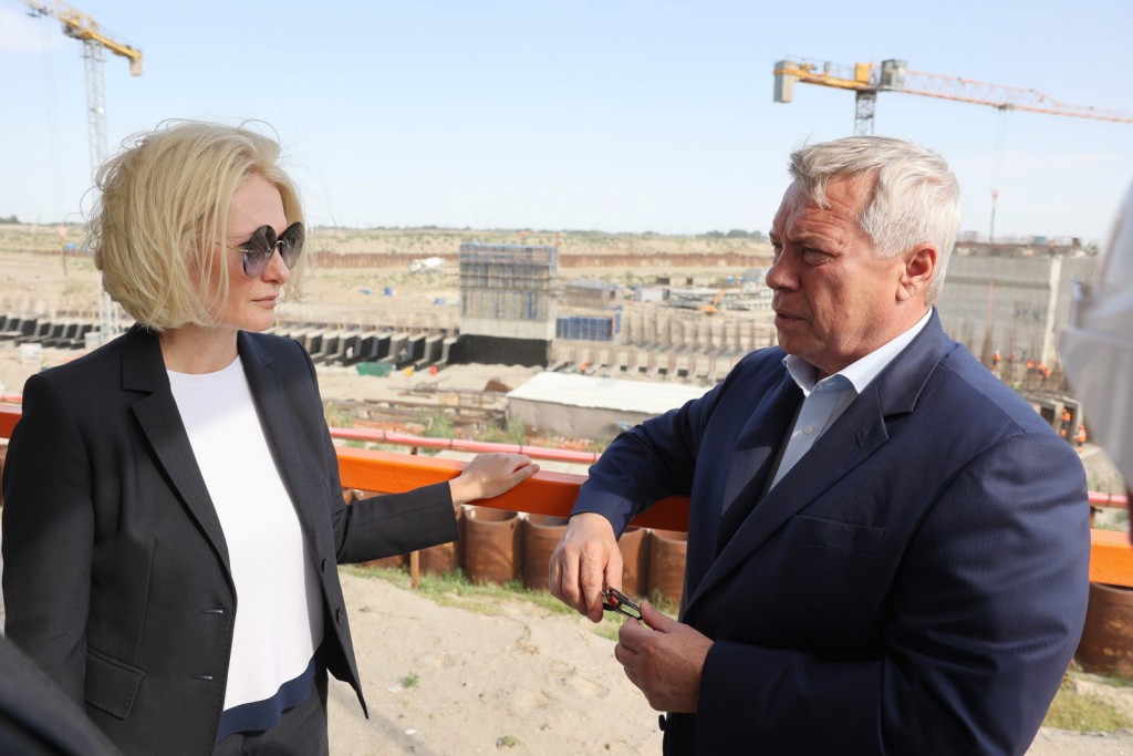 С инспекционным визитом на огромной стройплощадке побывал губернатор Василий Голубев вместе со своим советником Викторией Абрамченко — сообщает сайт Правительства Ростовской области.
