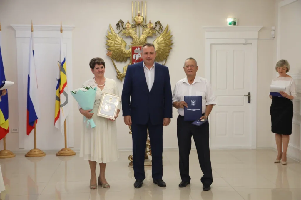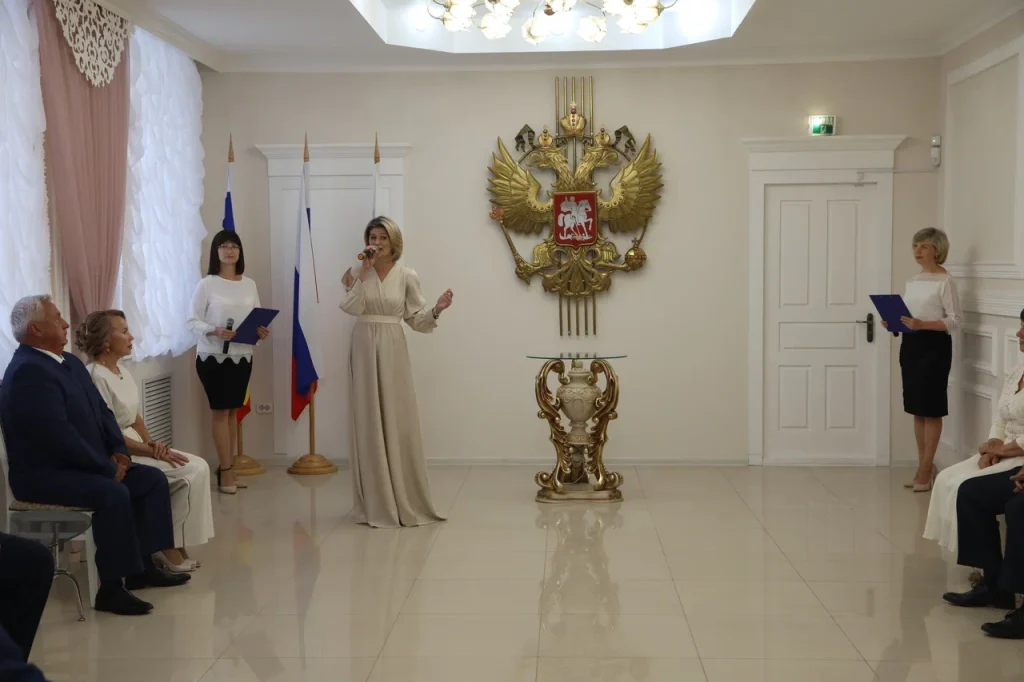 В Волгодонске супружеские пары, которые прожили в браке 45, 50 и более лет, были удостоены почётных наград. Вручение проводилось в праздничной обстановке, которую создали сотрудники ЗАГСа Волгодонска и артисты дворца культуры «Октябрь».