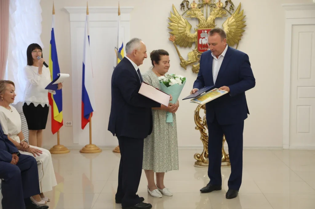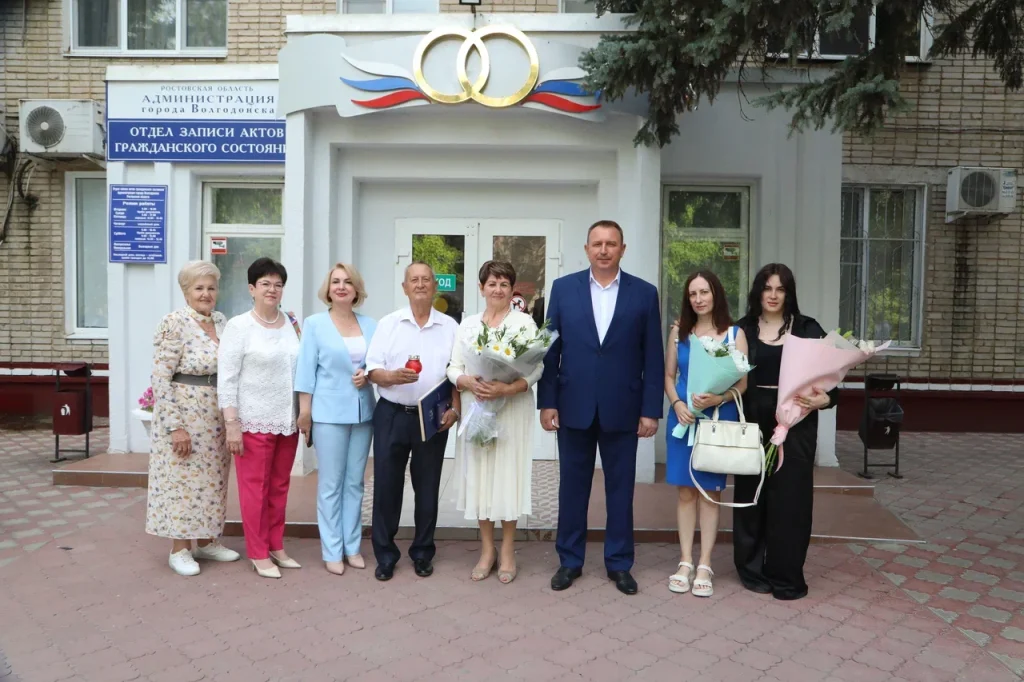Глава Администрации Волгодонска Юрий Мариненко поздравил виновников торжества, вручил им приветственные адреса и награды: знак Губернатора Ростовской области «Во благо семьи и общества» — семьям Гроо и Таразановым, медаль «За любовь и верность» — супругам Ермаковым и Хомутовым. Юрий Мариненко обратился к семьям с добрыми и тёплыми пожеланиями, отметил, что такие образцовые семьи — ценность для Волгодонска и пример для молодёжи.