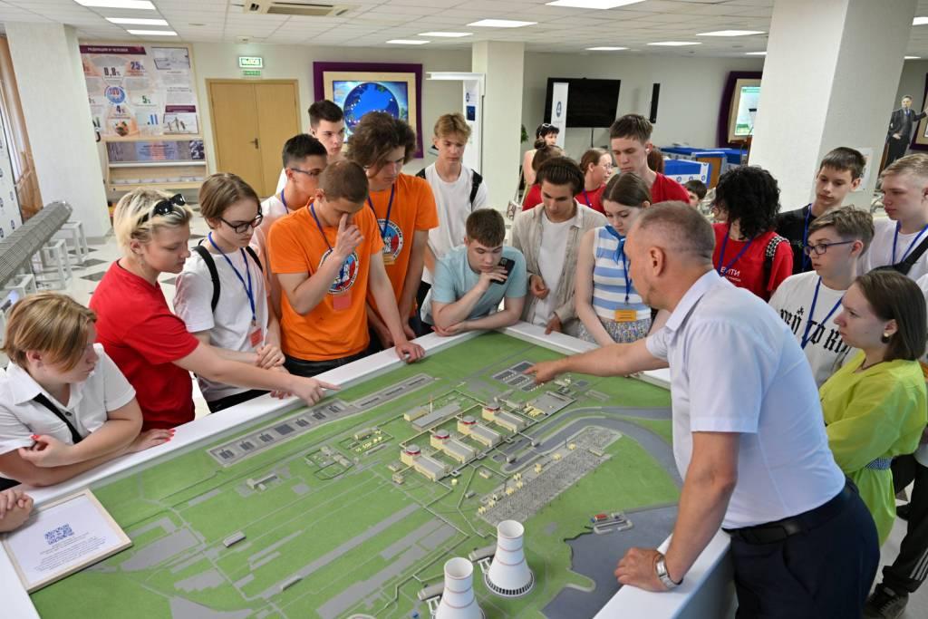 60 школьников профильных образовательных учреждений посетили информационный центр АЭС, где узнали об устройстве атомной станции и основных технологических процессах, познакомились с учебно-тренировочным подразделением, где проходит подготовку персонал энергоблоков, и побывали на промышленной площадке атомной станции.