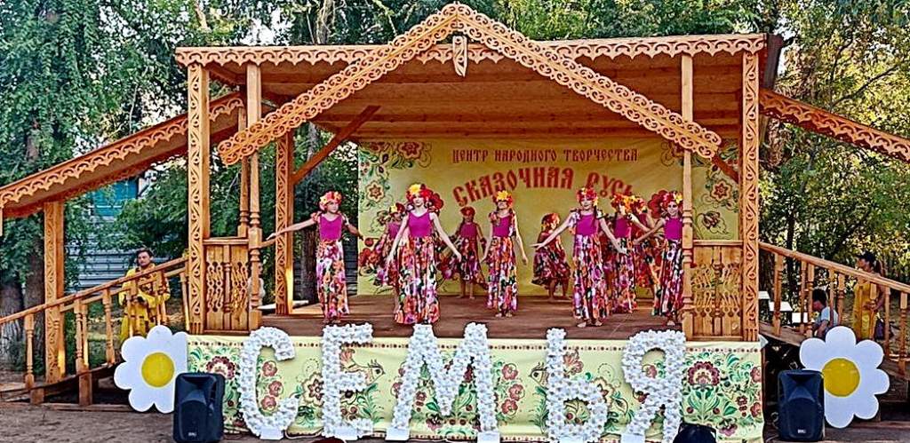 На праздничной площадке проходило весёлое музыкальное испытание для всех членов семьи «Кто перетанцует нашего Скомороха». Площадка «Фольклорная кладовая» познакомила детей и взрослых со старинными народными играми и забавами. Фольклорист сумела заинтересовать и вовлечь в игру сразу три поколения: детей, родителей и бабушек с дедушками. В «Богатырской заставе» для мальчишек и пап славный богатырь русский проводил мастер-классы по ратному мастерству. А в «Мастерской Василисы Премудрой» девчонки изготавливали себе и маме русский кокошник.