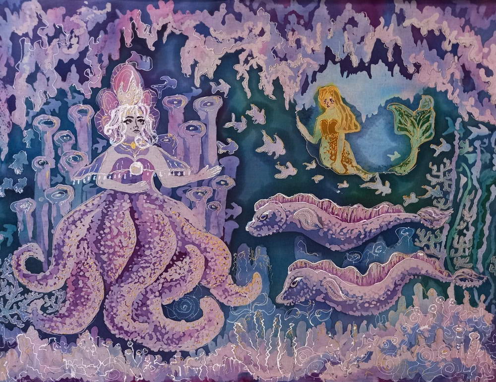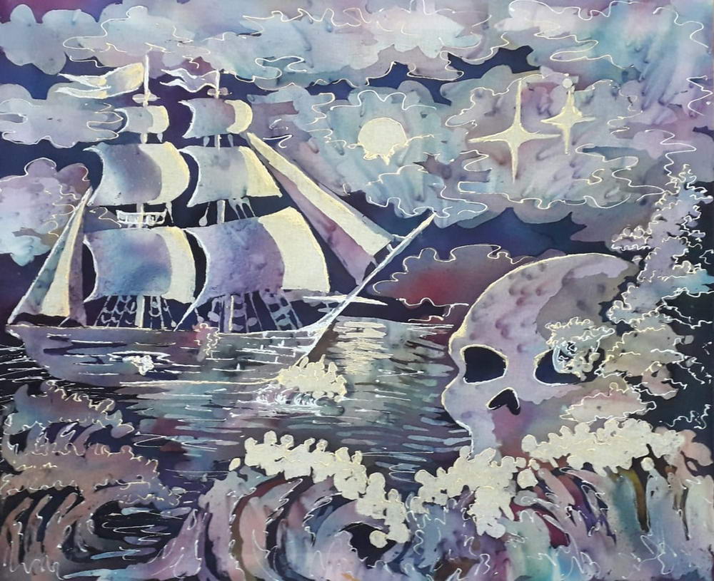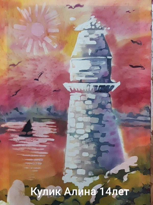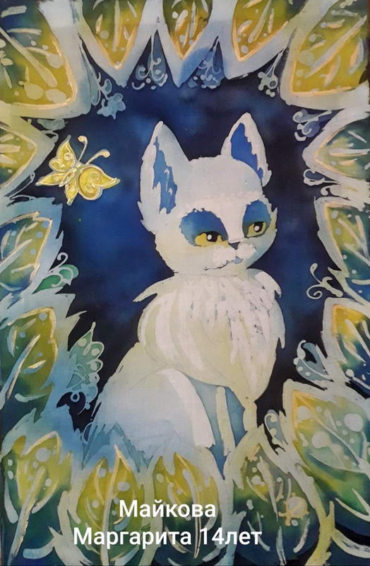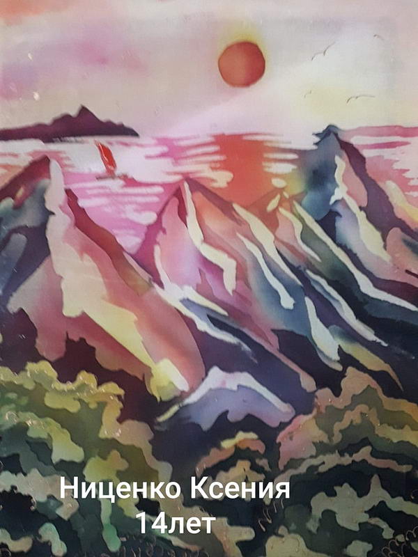 Выпускники художественного отделения Детской школы искусств также выбирают технику горячий батик для выполнения своей итоговой работы. Представлены дипломные работы работы выпускников и учащихся старших классов преподавателя Г.И. Куклы: