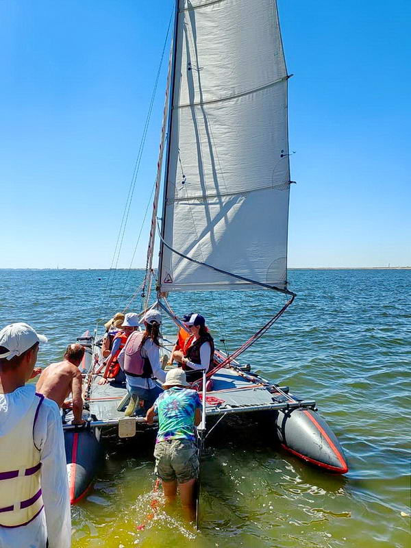 И, конечно, смогли увидеть сам процесс воочию. Специально для них юные яхтсмены провели показательную тренировку, за которой представители СЮТ наблюдали с борта парусного катамарана.