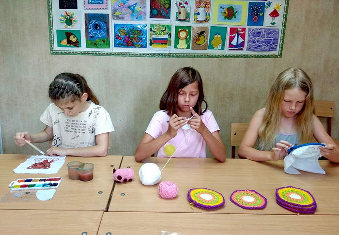 Под руководством педагогов Павленко Н.Г и Потихониной Е.П. дети лепили поделки из глины, рисовали, вышивали, вязали крючком игрушки, играли в настольные игры и даже запускали воздушных змеев. В итоге все активно отдохнули и ещё больше сдружились. Надеемся, что дни, проведенные в лагере, доставили детям много радостных минут и запомнятся им надолго!