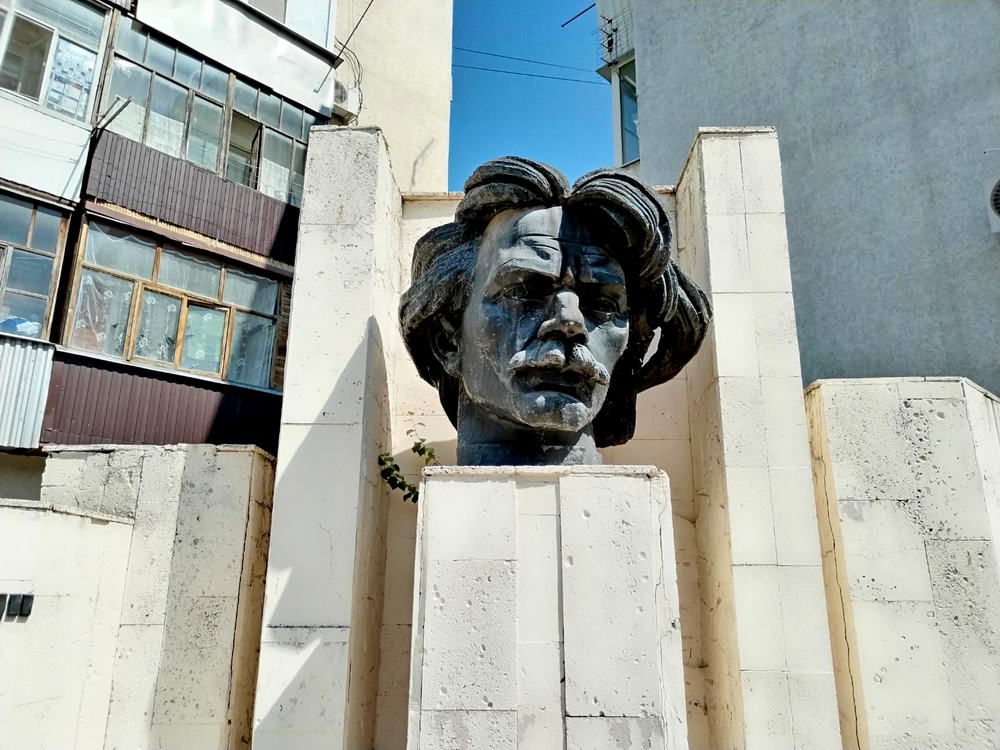 Василий Поляков изобразил молодого Горького времен написания песни «Песня о Буревестнике», пьесы «На дне»и романа «Мать». Через несколько лет памятник переделали, покрыв стену из кирпича плиткой. Не знаю, было ли это оправдано, но сегодня в яркий солнечный день из-за большой разности яркостей сам памятный знак невозможно рассмотреть – просто тёмное пятно..
