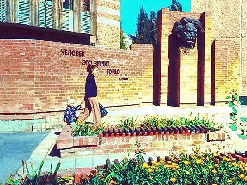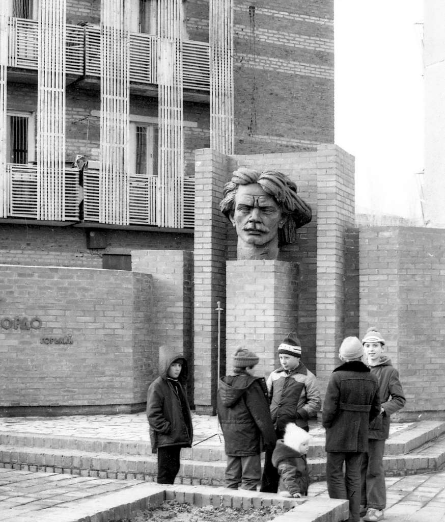 28 марта 1984 года состоялось открытие памятного знака в честь 116-й годовщины великого пролетарского писателя А. М. Горького. На митинге выступили: секретарь парткома Минмонтажспецстроя В. В. Вощиков, заведующая детско-юношеской библиотекой Т. А. Ионова, председатель совета микрорайона №17 В. В. Ковалев. Присутствовал на открытии автор памятного знака, скульптор, член Союза художников СССР В. П. Поляков.