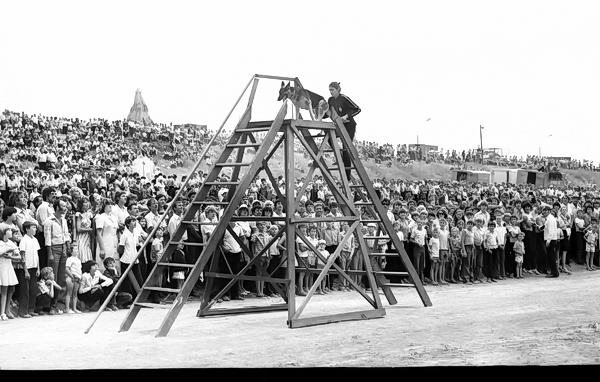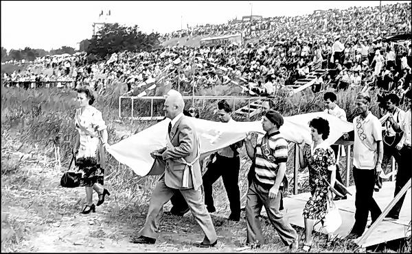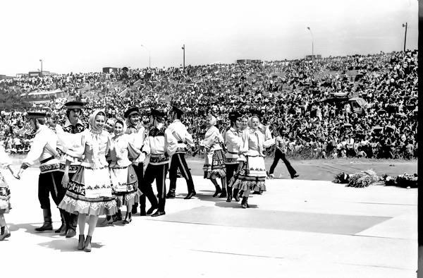 Дамба Цимлянской ГЭС стала огромной трибуной. Где ещё могли разместиться десятки тысяч волгодонцев, собравшихся отпраздновать 30-летие родного города!