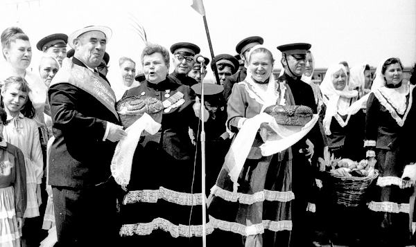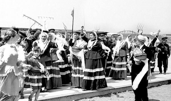 Диктор продолжает поэтический рассказ о трудовых подвигах волгодонцев, а на акватории залива появляются суда, оформленные транспорантами и девизами важнейших строек: Цимлянская ГЭС, химзавод имени 50-летия ВЛКСМ, Атоммаш.