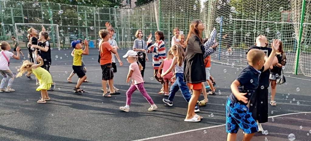Много музыки, веселья, позитива. Радости добавили мыльные пузыри. Зажигали от души! Бабушки и родители танцевали с детьми и принимали участие в играх. А подготовил и провёл танцевально-игровую, развлекательно-зажигательную программу коллектив Волгодонского молодежного драматического театра.