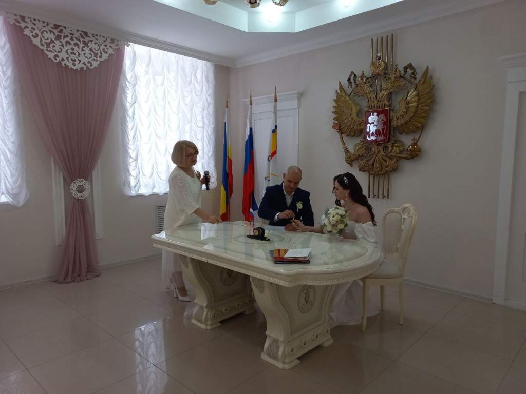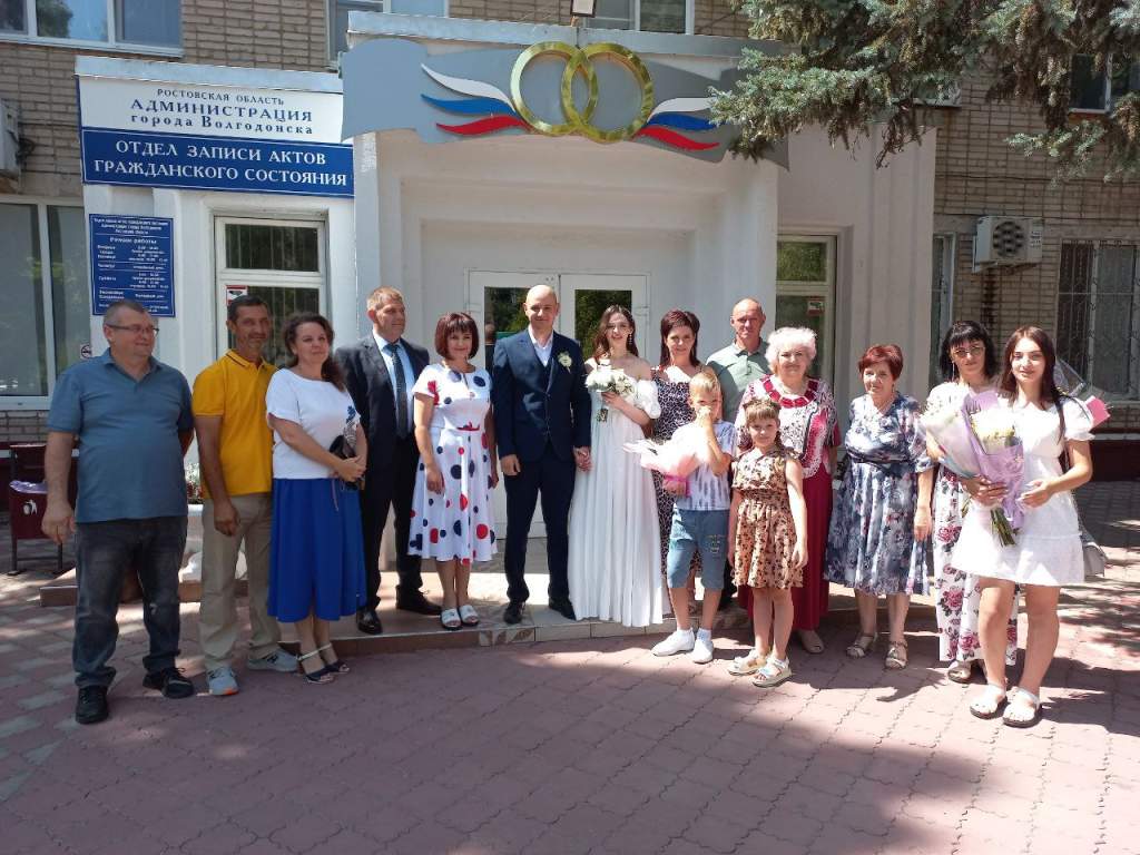 —Сегодня день рождения нашего Волгодонска. 27 июля ему исполнилось 74 года. Мы решили поздравлять женихов и невест с учётом значимой для всех горожан даты, — отметила Наталья Ульченко. — Молодожёнам будем вручать приветственные адреса от главы Администрации Волгодонска Юрия Мариненко и Губернатора Ростовской области Василия Голубева. По желанию пар предусмотрены обряды со свадебной чашей, свечой, рушником. Они пользуются популярностью у молодых. По всей видимости, их родители, бабушки и дедушки дают им наказы, чтобы эти традиции передавались из поколения в поколение. Поэтому все будет очень красиво. Сегодня у нас регистрируются десять пар, пять из них — впервые.