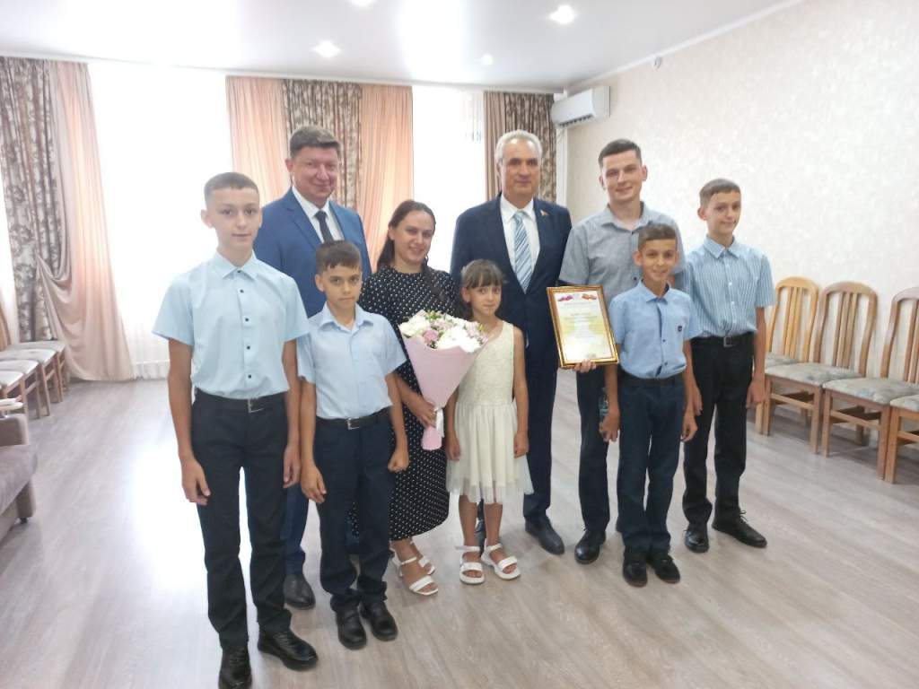 Персонально Виктор Халын поздравил и поблагодарил семью Щавелевых, которых участвовала в Ростовском областном конкурсном отборе Всероссийского конкурса «Семья года» в 2024 году в номинации «Молодая семья». Депутат Заксобрания подарил им столовый и чайный сервизы. Егор Викторович и Валентина Александровна были на празднике с пятью детьми. Старший находился в лагере. 35-летние супруги Щавелевы поблагодарили за внимание, за помощь государства, и сказали, что главный секрет счастливой семейной жизни — любовь.