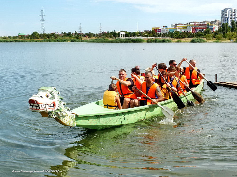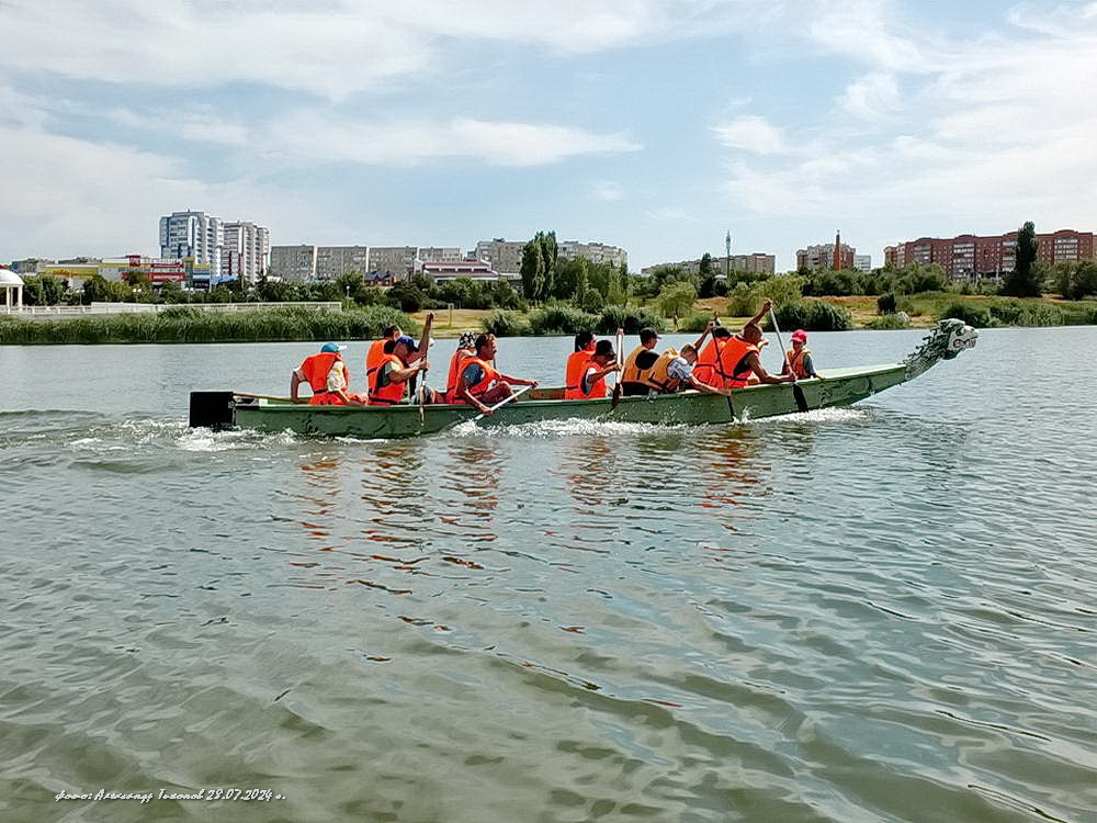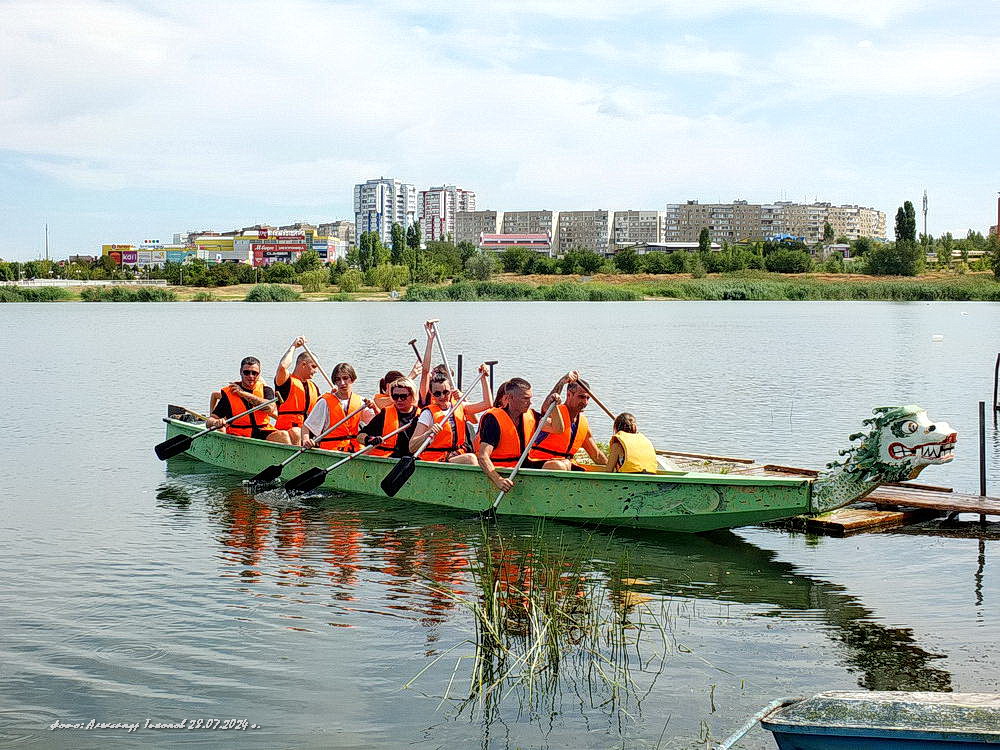 Сегодня, 28 июля, в заливе Сухосолёновской балки, в акватории гребной базы спортивной школы №4 Волгодонска прошли интересные соревнования на лучшее время по гребле на лодке «Дракон», посвященные Дню города и 50-летию гребного спорта в нашем городе.