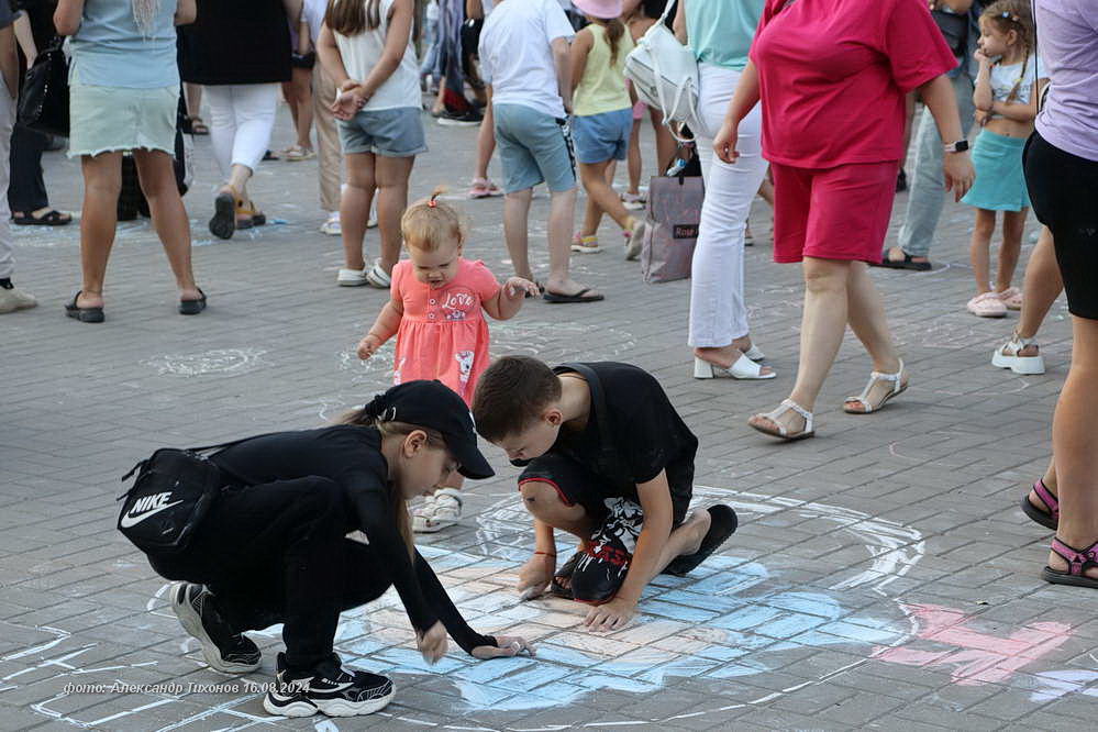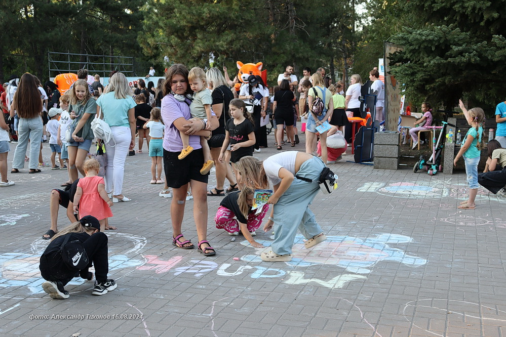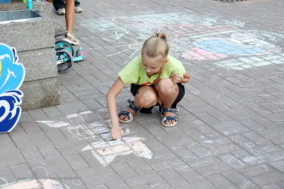 Праздник начался с конкурса рисунков на асфальте, естественно, на тему праздника. Победители в нескольких номинациях были награждены организаторами праздника.