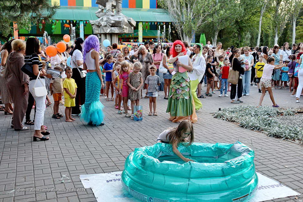 Сегодня, 16 августа, в парке Победы у фонтана для детворы Волгодонска бассейн «Малёк» и школа скорочтения и развития интеллекта IQ 007 провели весёлый и зажигательный праздник «День Нептуна».