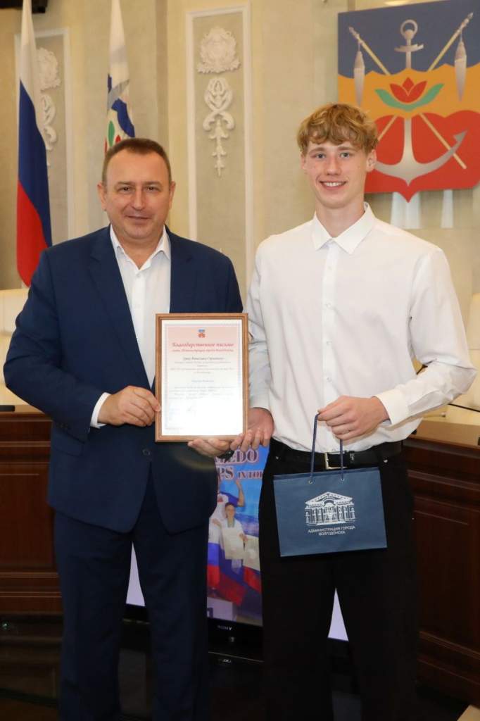 Глава администрации Волгодонска Юрий Мариненко наградил юных спортсменов, завоевавших «Золото» на соревнованиях мирового уровня, сообщает новостной портал городской администрации.