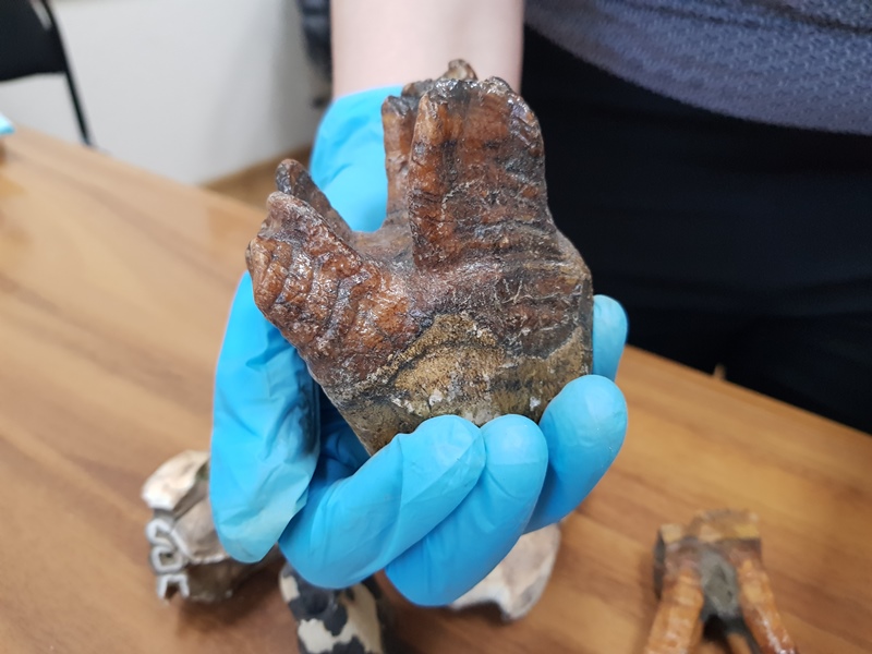 дериваты древнего носорога, сообщила пресс-служба ведомства. Было изъято 23 предмета палеонтологии: 22 окаменелых зуба и фрагмент нижней челюсти животного.