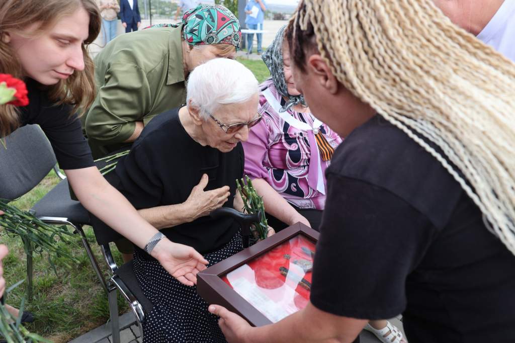 Родственники красноармейца Трофима Ильича Ковалева приехали попрощаться с героем. Они поблагодарили поисковиков и региональную власть за возможность достойно похоронить своего солдата.