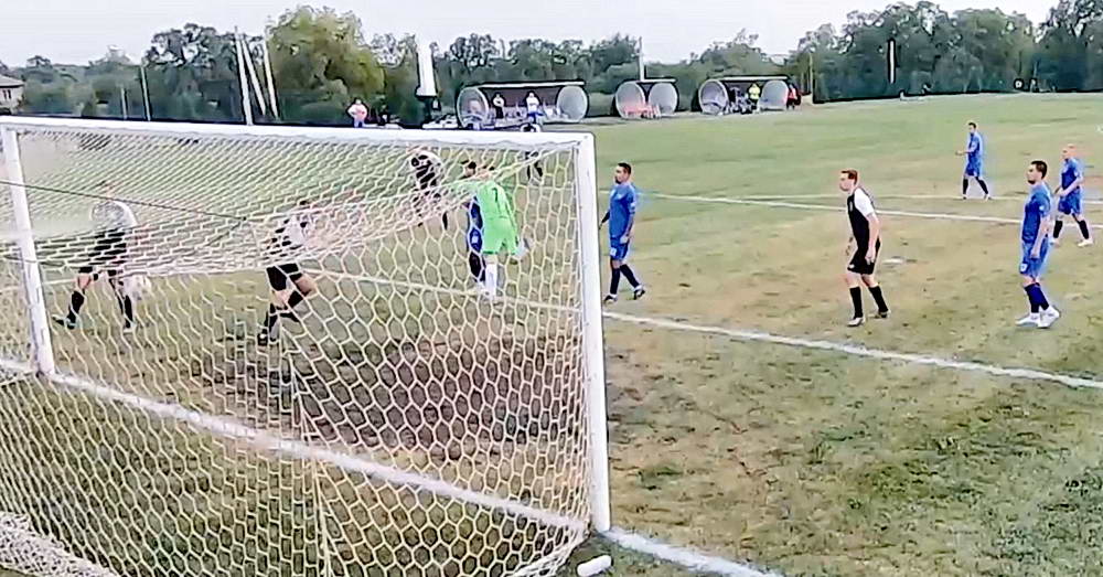 Волгодонские футболисты играют в синей форме. фото- скриншот видео Ф/К «Волгодонск»