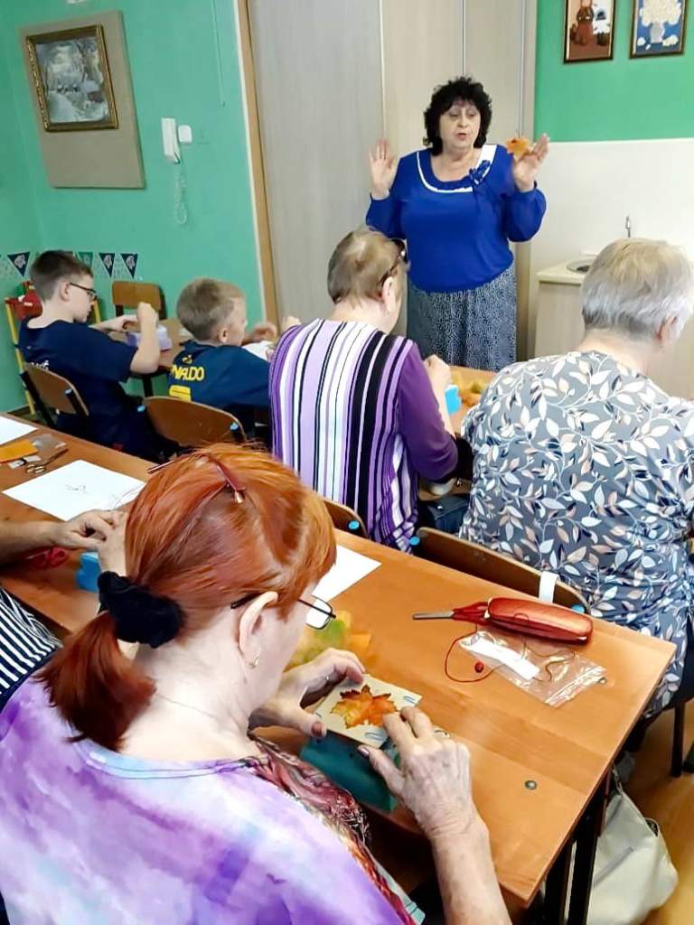 В этот день в структурном подразделении, клубе по месту жительства «Виктория» ребята вместе с педагогом Доброносовой А.В. провели творческий мастер – класс для участниц вокальной группы «Славяночка» микрорайона № 22. Участники мастер — класса научились делать брошь «Осенний листок» в технике сухого валяния.