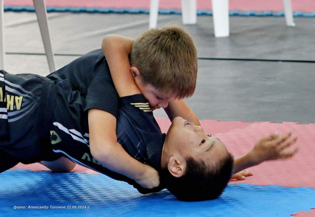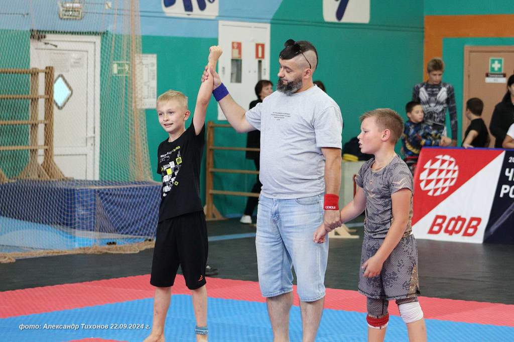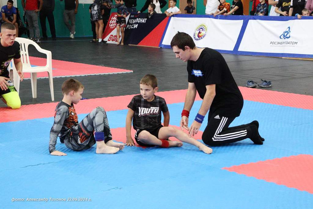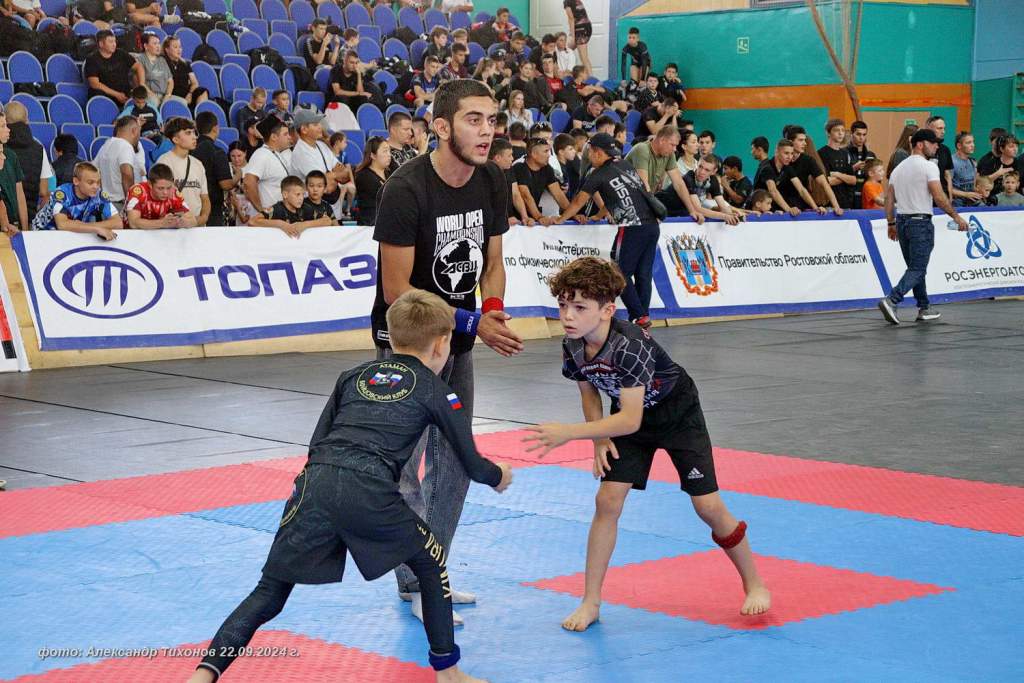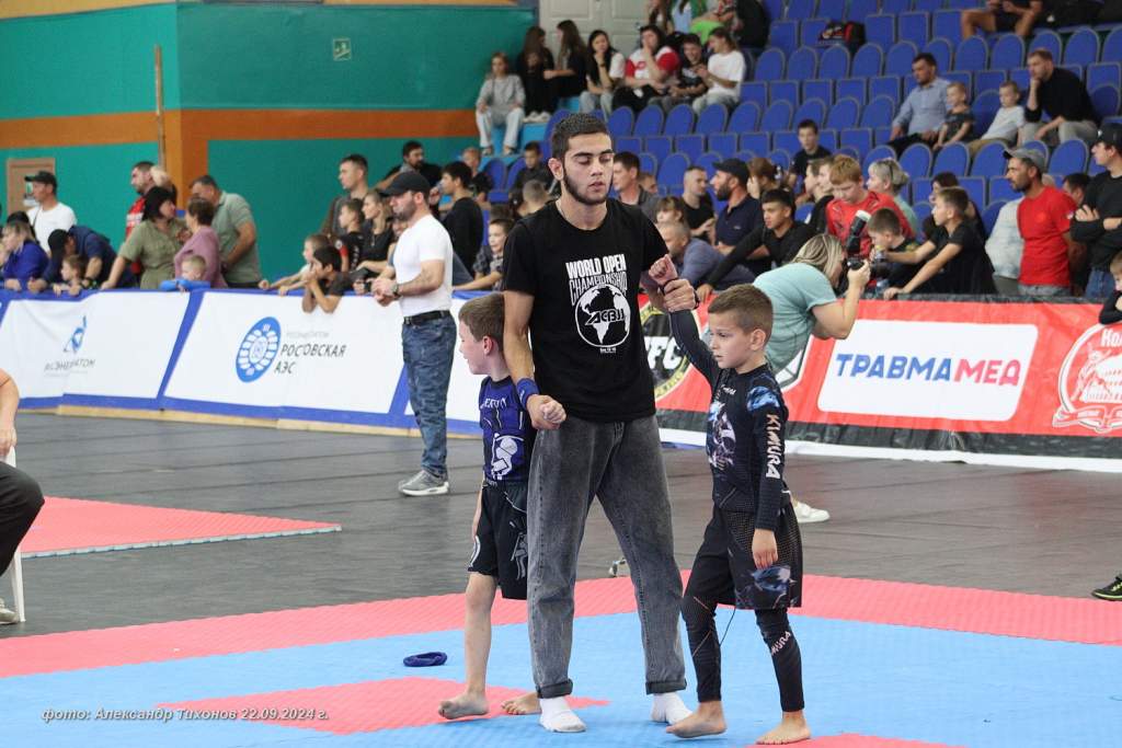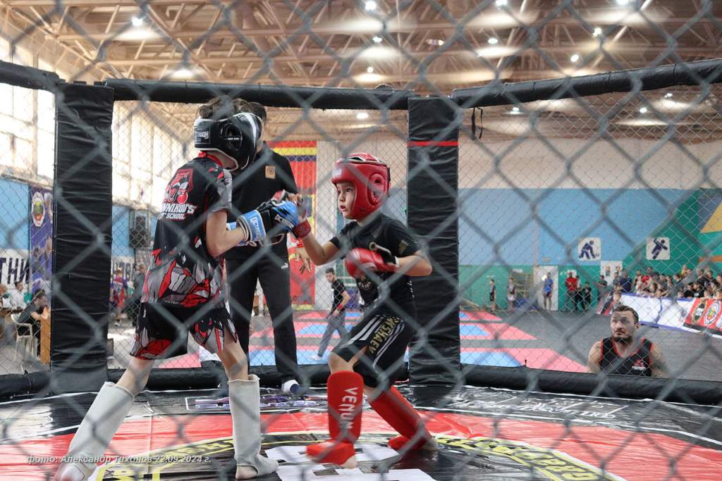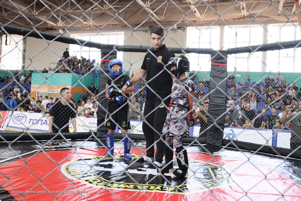 А затем на трёх коврах и в клетке начались бойцовские поединки юных спортсменов.