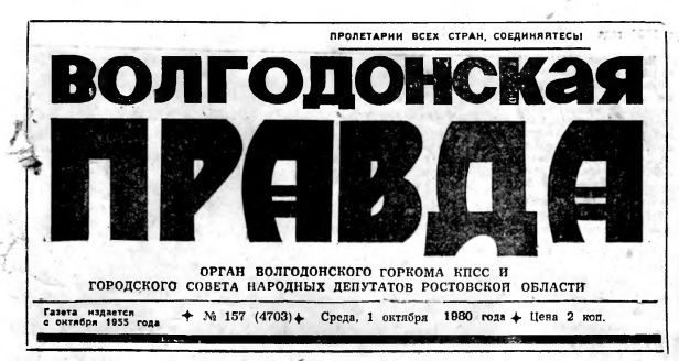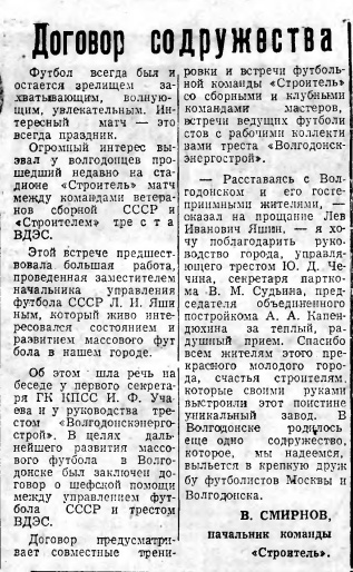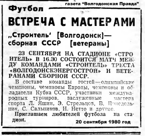 Предлагаем вашему вниманию отчёт об этой игре, который был опубликован в городской газете «Волгодонская Правда» 1 октября 1980 года.