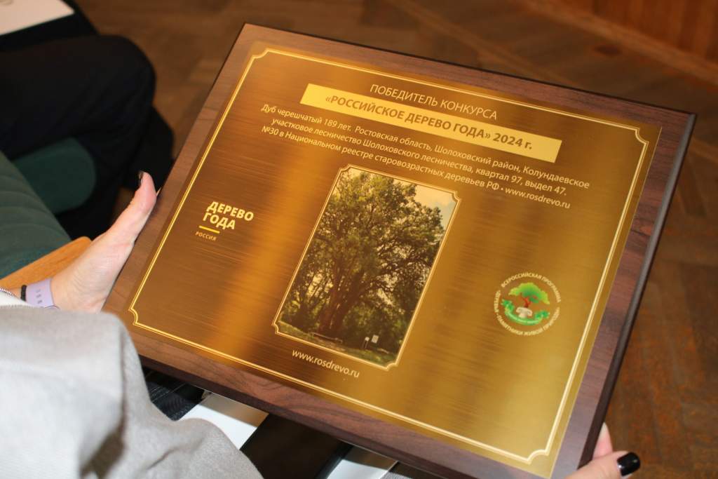 Торжества, посвященные победе дуба-великана в национальном конкурсе «Российское дерево года-2024», прошли в станице Вёшенской. Состоялось открытие памятной таблички, установленной возле дерева в честь признания черешчатого дуба победителем конкурса.