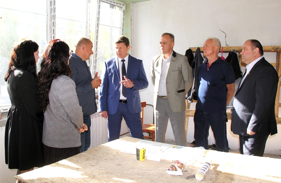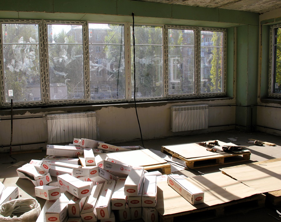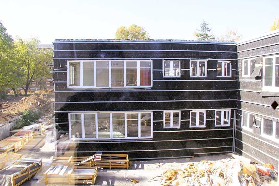 Осмотр показал: реконструкция здания ведётся интенсивно. Заметно преобразился фасад, в стадии завершения монтаж отопительной системы, почти полностью проложены наружные сети, установлены окна и входные двери. Рабочие сделали стяжку на первом этаже, приступили к работам на втором, начали сооружать прогулочные веранды.