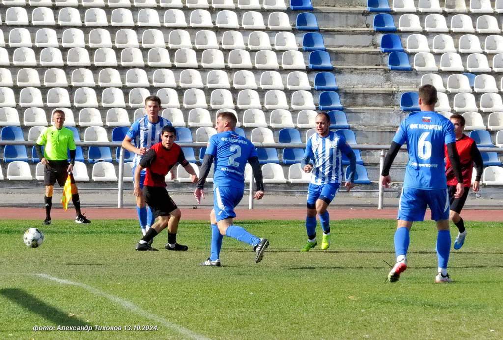 Как и ожидалось, «Монрем» убедительно переиграл своего соперника из посёлка Зимовники. Волгодонцы в начале первого тайма (7 мин) открыли счёт. Затем игра выровнялась и до конца первого тайма ни одна из команд не смогла добиться успеха. Но было понятно, что гостям на одном энтузиазме перелома в матче не добиться. Так оно и произошло .